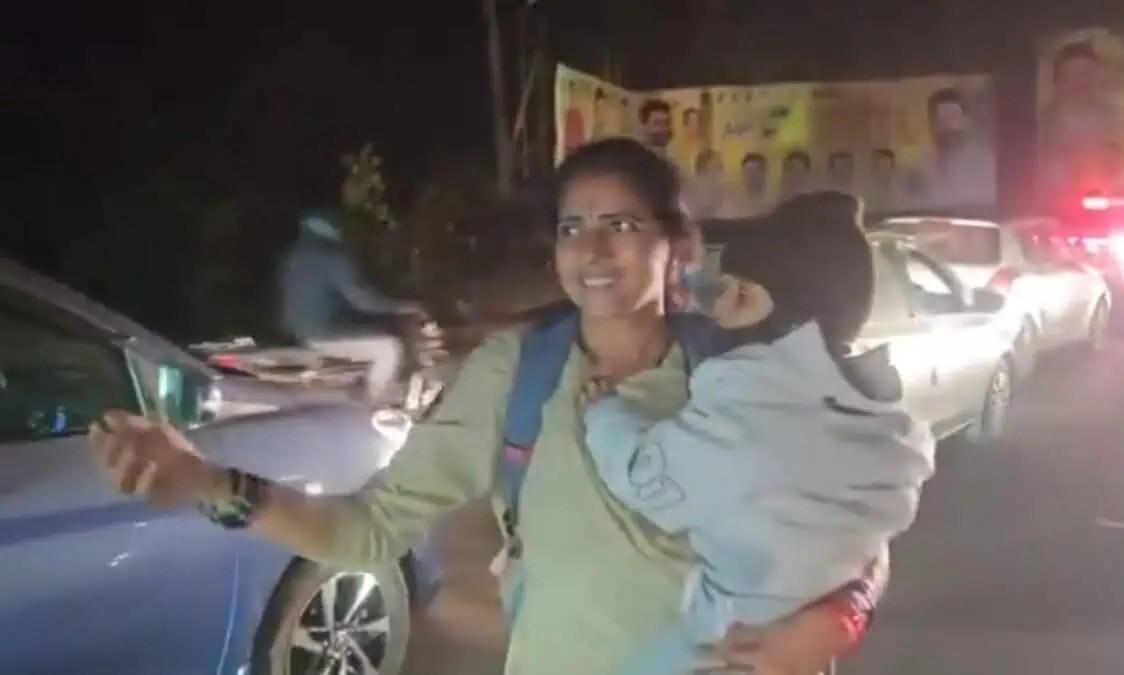 Andhra woman cop manages traffic jam holding baby in arms