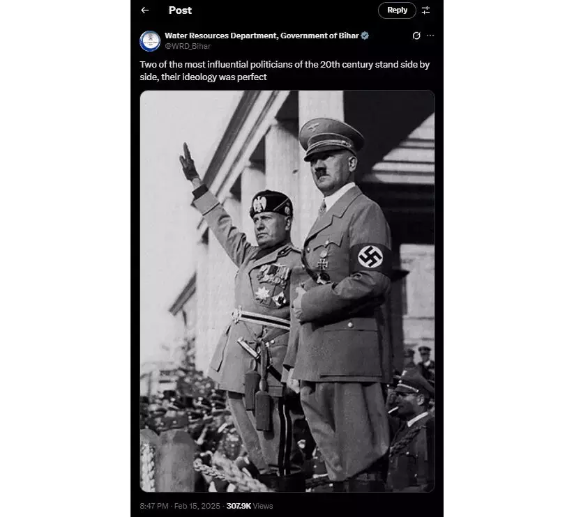 BJP-led Bihar govt's official X post praises Hitler, Mussolini