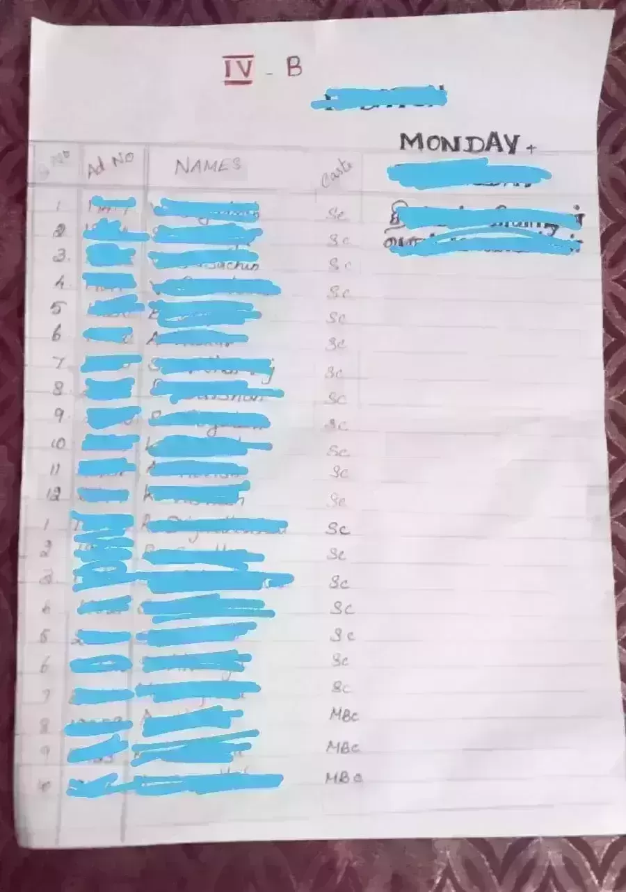 The headmistress also said that this was only for administrative purposes and that students will not know of the castes of their classmates.