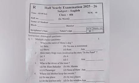 The contentious question asked students to identify the name of “Mona’s dog,” offering the options: “Bala,” “Sheru,” “No One,” and “Ram.”