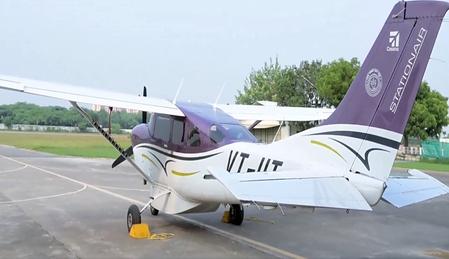 “The plane with two passengers took off at 12.20 p.m. and it will take about two-and-a-half hours to reach Delhi,” said an official of IIT Kanpur Media Cell.