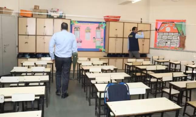 text_fieldsNew Delhi: Nine prominent schools in Delhi received bomb threat emails Monday morning, prompting evacuations and searches by police, fire teams, and bomb squads, the latest in a wave of hoaxes straining emergency services and alarming parents.