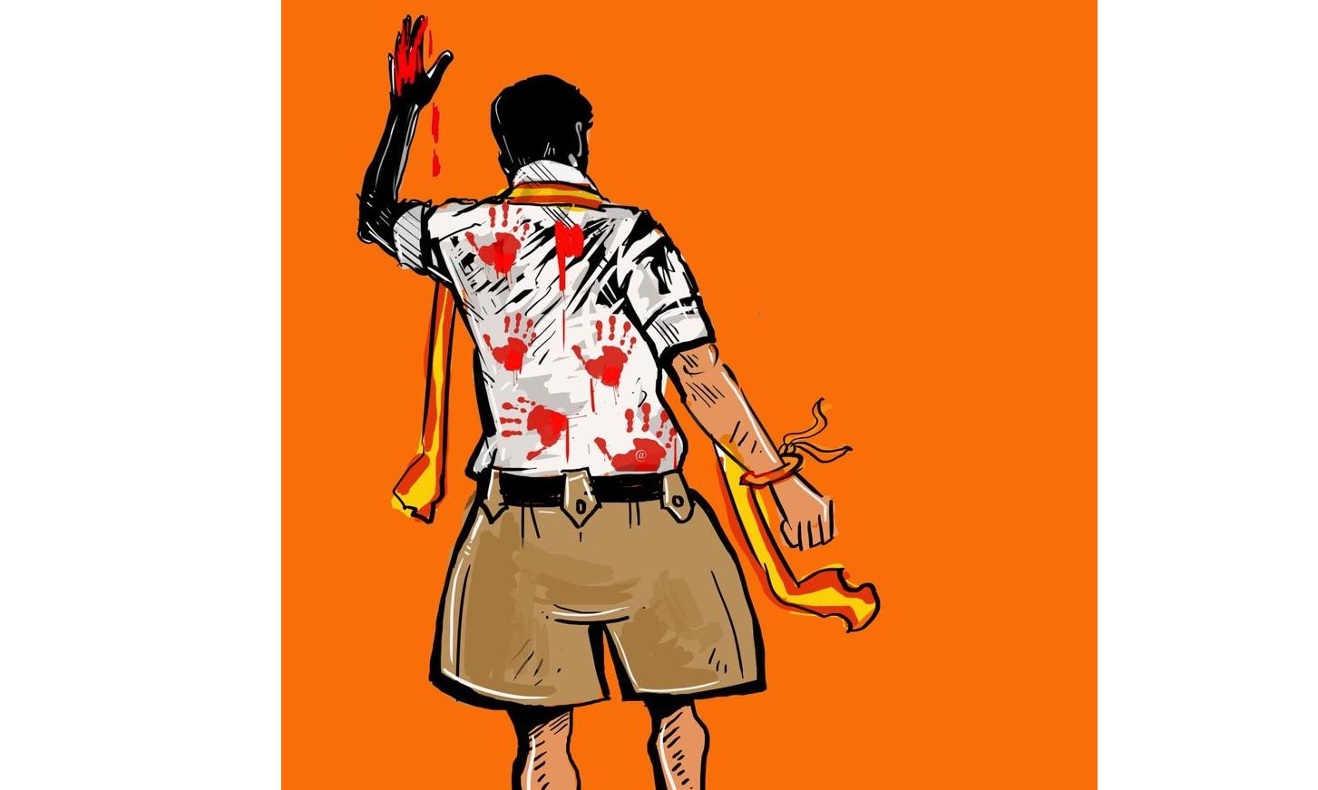 The poster, shared by the DMK’s IT Wing on social media platform X, shows a graphic image of Vijay wearing an RSS uniform with a shawl in the colours of the TVK flag, standing with his back turned. The image also features red handprints, symbolising blood stains. The post was shared with the hashtag #JusticeForKarurVictims.