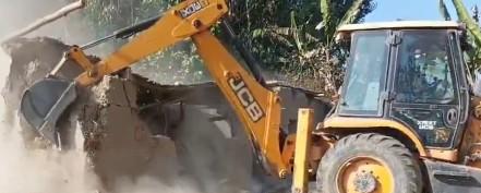 Visuals shared on social media appeared to show bulldozers dismantling bamboo and thatch houses as families, including women and children, watched, while police personnel monitored the process.