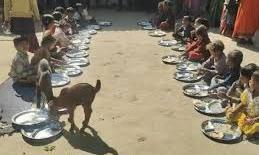Goats eat mid-day meal beside children in Madhya Pradesh Anganwadi
