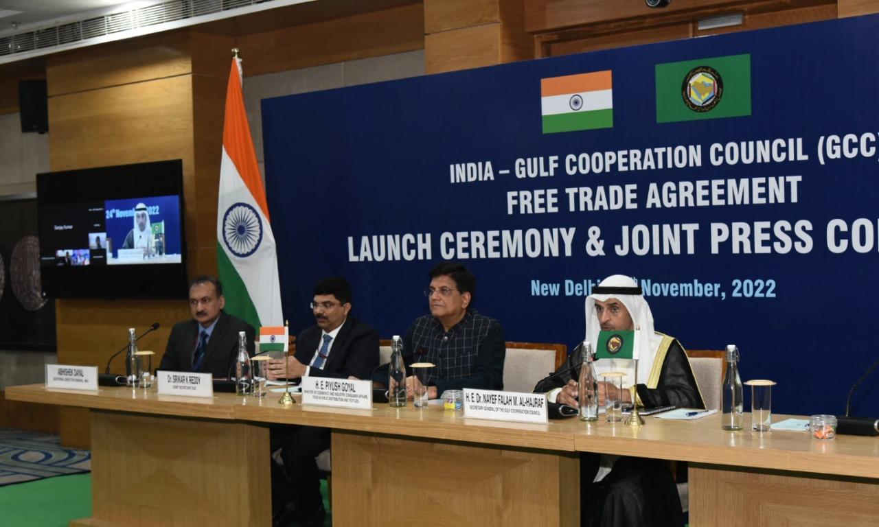 text_fieldsRiyadh: Shri Piyush Goyal, Minister of Commerce and Industry, Consumer Affairs, Food, and Public Distribution and Textiles, Government of India, and His Excellency Dr Nayef Falah M Al-Hajraf, Secretary General, Gulf Cooperation Council (GCC), held a Joint Press Conference, in New Delhi today, to announce the intent to pursue negotiations on the India-GCC Free Trade Agreement (FTA).