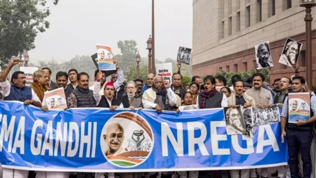 Several opposition MPs staged a protest march inside Parliament, with Congress chief Mallikarjun Kharge asserting that the move represents the “systematic murder of the world’s largest employment scheme.” Carrying a large banner reading “Mahatma Gandhi NREGA,” MPs marched from the Gandhi statue at Prerna Sthal to Makar Dwar, chanting slogans against the government.
