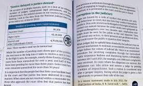 In a chapter titled “The role of the judiciary in our society”, the book lists “corruption at various levels of the judiciary” and a “massive backlog” due to reasons such as inadequate numbers of judges, complicated legal procedures, and poor infrastructure.