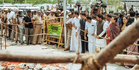 IG Asra Garg, led the SIT's first field review at the rally site. Officers surveyed the grounds, examined access and exit points, and evaluated safety arrangements that were in place when the massive crowd turned chaotic.