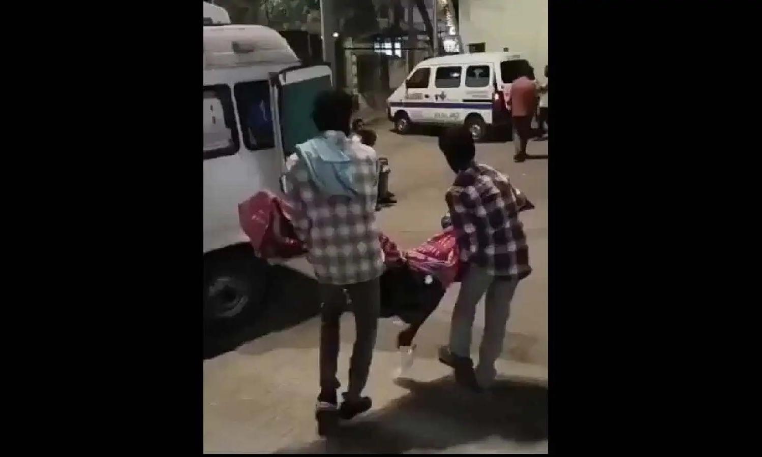 The patient, from Khammam, had been rushed to the facility following a heart attack and died during treatment. A video circulating on social media captured two men hoisting the body awkwardly until they reached the vehicle.