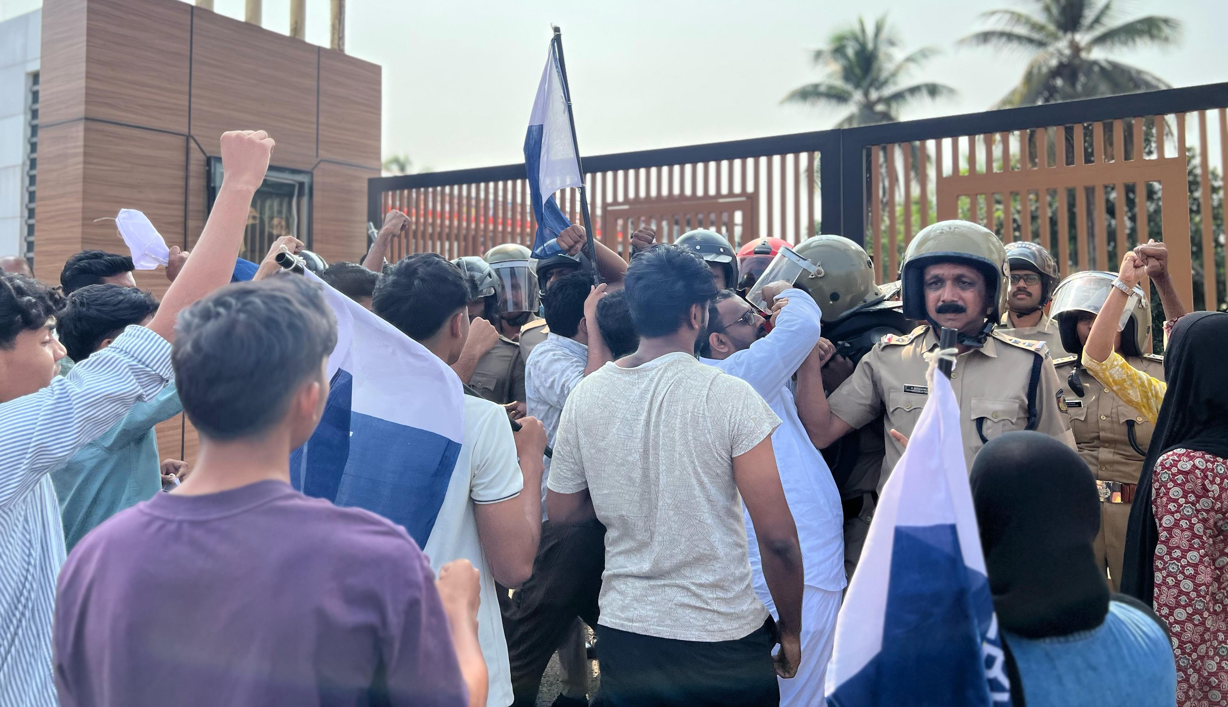 text_fieldsPolice stopped a protest march organised by the Fraternity Movement at a theatre in Edappal, Malappuram, where ‘The Kerala Story’ was being screened.