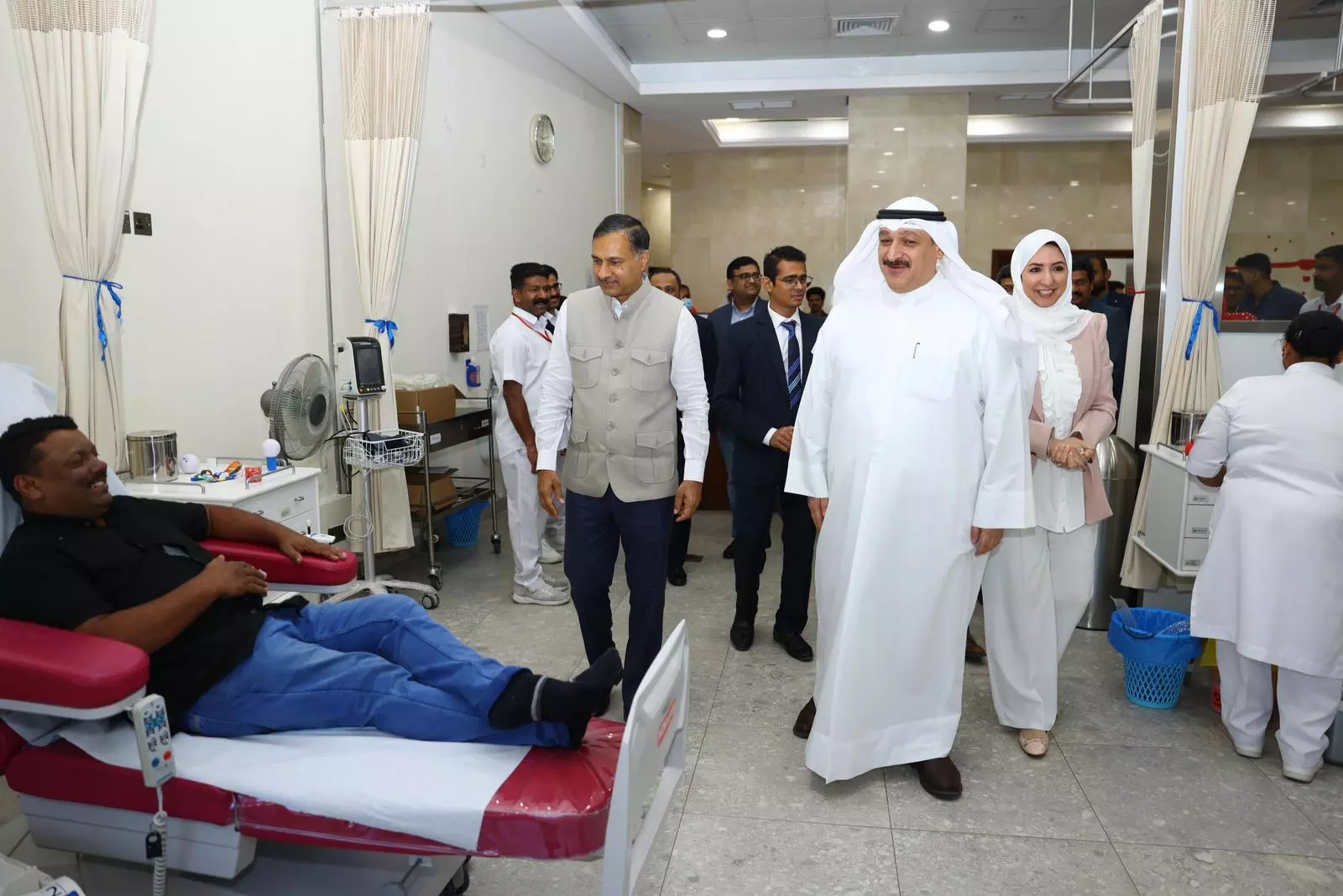 text_fieldsThe Embassy of India in Kuwait, in collaboration with the Forum of Indian Doctors, organized a blood donation camp today at Adan Hospital to mark World Blood Donors Day. The event drew significant participation from the Indian expatriate community and other residents, reinforcing the long-standing tradition of humanitarian service by Indian nationals in Kuwait.