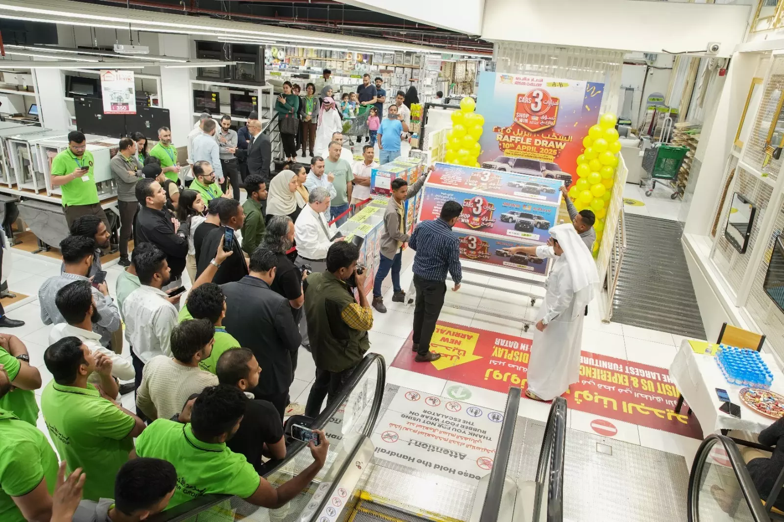 The grand raffle draw was held on April 10 at Ansar Gallery Barwa and witnessed the presence of distinguished guests. Among them was Mr. Mohammed Al-Kaabi, Inspector from the Ministry of Commerce and Industry, who oversaw the proceedings. He was joined by key members of the Ansar Gallery management team, including Deputy General Manager Mr. Khaldoun, Marketing and Graphics Manager Mr. Shamsheer Pariyat, along with Mr. Ahmed Elseoudy, Mr. Abbas, Mr. Abdulaziz and PRO Officer Mr. Waleed.