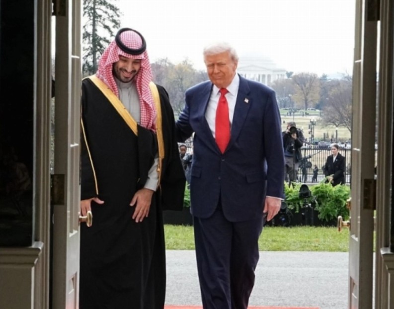 text_fieldsU.S. President Donald Trump hosted Saudi Crown Prince and Prime Minister Mohammed bin Salman at the White House on Tuesday evening, welcoming him with full ceremonial honors on the South Lawn.