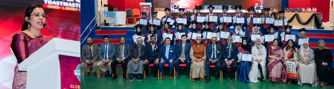 At the grand finale, Abeeha Mahmood received the special award. In the Evaluation Speech category, Mohammed Raihan secured first place, followed by Musab Ali and Mehrish Khadeer. Table Topics winners were Atish Sunil, Hrithik Ram, and Abdul Hadi and Irha Rahman. In Debate (Proposition), Abdullah Nasir placed first, followed by Viona Hareesh and Abdul Mugni. Debate (Opposition) winners were Rehan Islam, Mohammed Iqbal and Aisha. In the International Speech category, Mahnoor Shahid won first place, while Ayza Ramzi, Inaya Hammad and Mohammed Abdullah secured second, and Arya Rajendran, Shivam Kumar, Rumaisa Manha and Umaima Huda placed third.