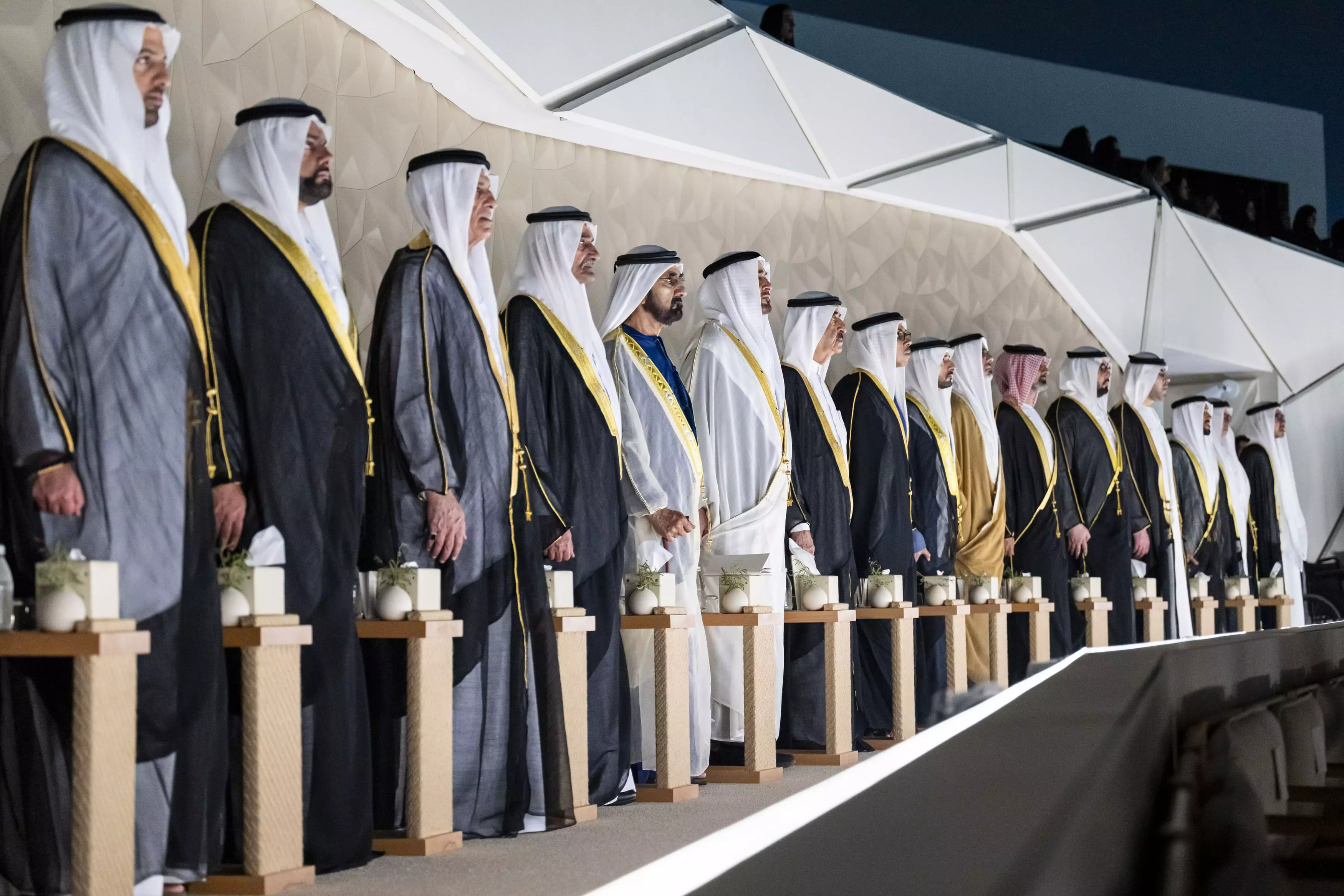 President Sheikh Mohamed bin Zayed Al Nahyan attended the ceremony alongside members of the Supreme Council, rulers of the emirates, crown princes, deputy rulers and senior officials. The program features a drone show above the museum and a staged narrative tracing key moments from the UAE’s past.