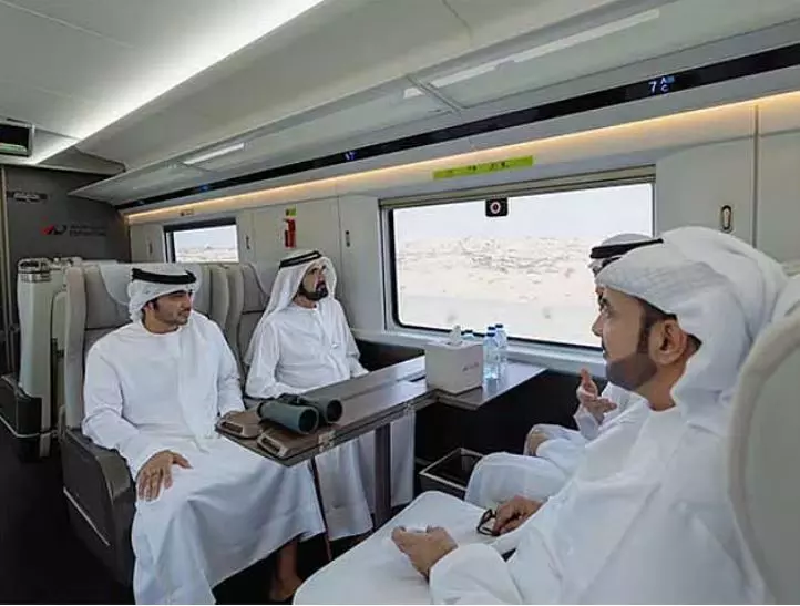 Sheikh Mohammed boards Etihad Rail for test ride from Dubai to Fujairah