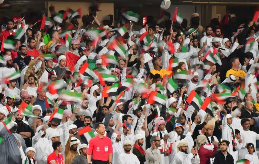 UAE supporters waved flags, sang patriotic songs and chanted in support of the team in Doha.