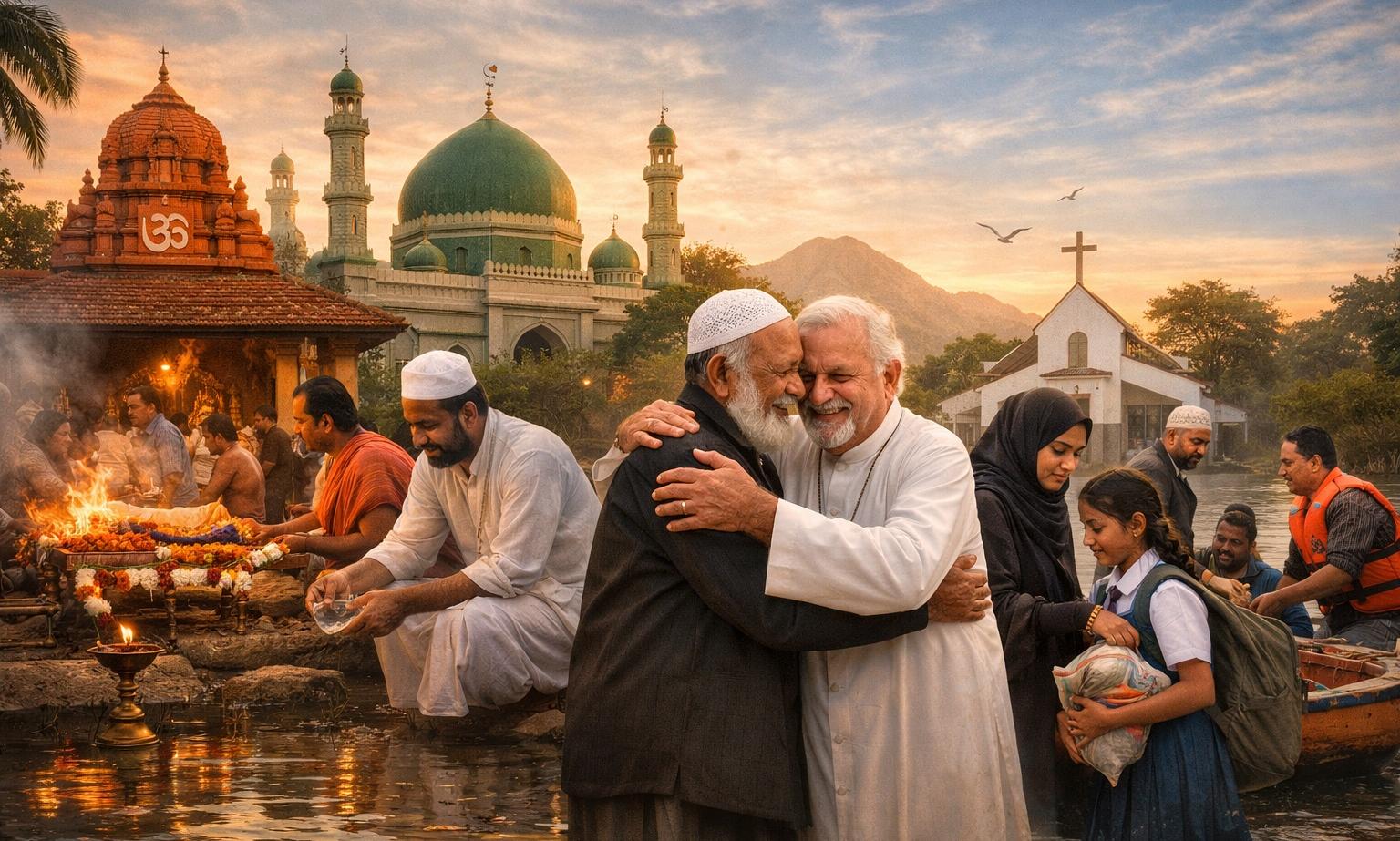 It is a chronicle inscribed not in propaganda but in compassion; not in suspicion but in solidarity. This is the Kerala where mosques shelter Hindu rituals, where temples and churches share walls with quiet fraternity, where grief dissolves doctrinal boundaries, and where humanity prevails over the shrill arithmetic of division.