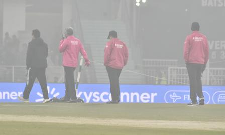 On-field umpires Rohan Pandit and K.N. Ananthapadmanabhan conducted six separate inspections but were forced to abandon the game as visibility worsened throughout the evening. The decision was made as dense fog enveloped the ground and the Air Quality Index (AQI) neared the 400 mark, making play impossible. BCCI Vice-President Rajeev Shukla was present and conferred with officials, but the weather did not relent.