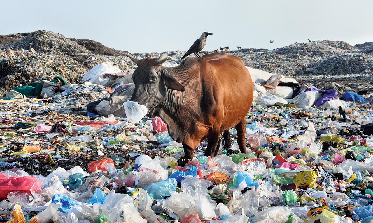 A cow eats plastic at a garbage dump in Amritsar/PTI File Photo