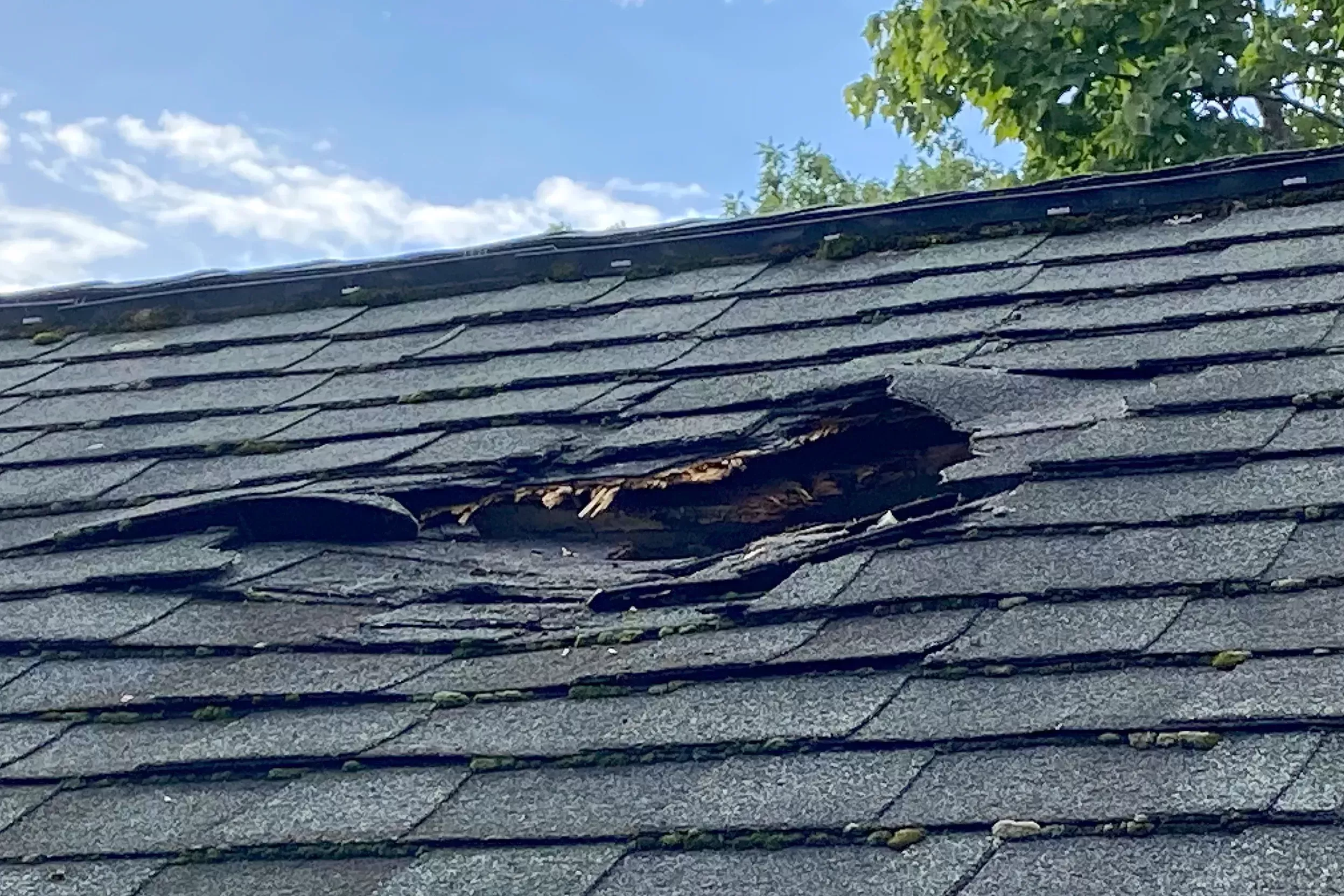 Given the nocturnal timing, precise damage assessment was challenging. While his wife contacted the police, Ilg identified a hole in the roof. He then climbed to the attic to verify the extent of the damage. Although the external impact measured between 18 inches to two feet in diameter, the internal damage was more extensive.