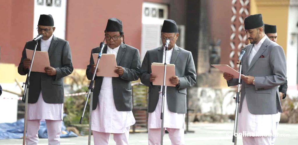 President Ramchandra Paudel administered the oath to former Justice Anil Kumar Sinha, National Innovation Centre founder Mahabir Pun, journalist Jagdish Kharel and governance expert Madan Pariyar.